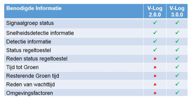 In de attributen van V-log-info en verkeerstelling is te zien dat V-Log-info meer informatie kan bevatten. In de volgende figuur zijn de verschillende attributen van de V-Log-objecttypes te zien.