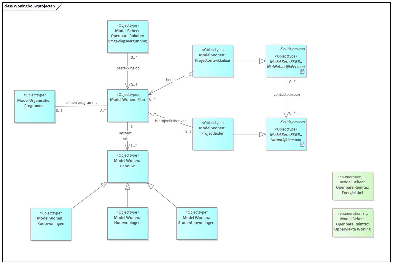 Het woningbouwproject die in het kader van gebiedsbeheer worden uitgevoerd worden los geadministreerd. Woningbouwprojecten kunnen binnen een ‘Programma’ vallen. Ieder ‘woningbouwproject’ levert een aantal woningen op. Deze woningen zijn 1 van 3 soorten: koopwoningen, huurwoningen of studentenwoningen. Een ‘Woningbouwproject’ heeft een of meer projectontwikkelaars en kan een ‘projectleider’ hebben.