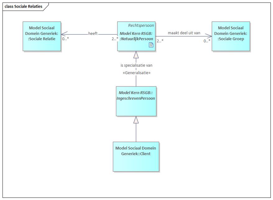 We introduceren Sociale Relatie en Sociale Groep en koppelen die aan Natuurlijk Persoon. We introduceren de rol die iemand in de Sociale Relatie met iemand anders heeft. - De buurman - Hangjongerengroep in het winkelcentrum - Lid van voetbalvereniging - Lid van motorbende - De scope van de mensen waar deze casus, dit plan betrekking op heeft