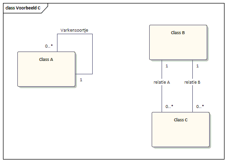 - Relatie Class A en Class B: relatienaam = "Relatienaam"