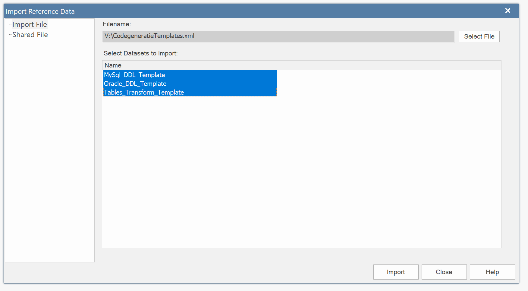 5. Selecteer het zojuist gedownloade bestand 'CodegeneratieTemplates.xml', selecteer alle templates en druk op Import