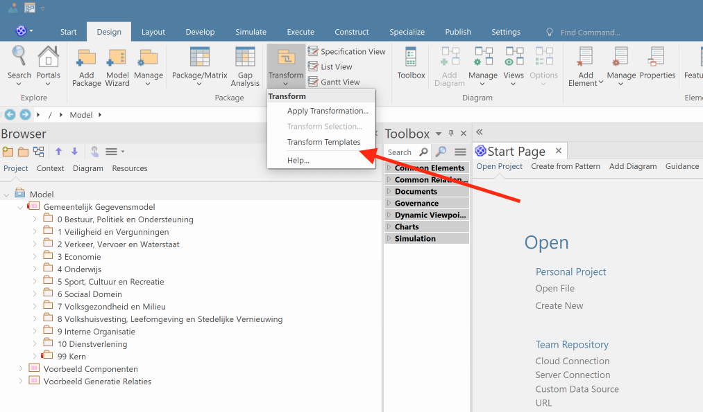 Ga hiervoor als eerste naar het onderdeel Transform templates. Zie hieronder.