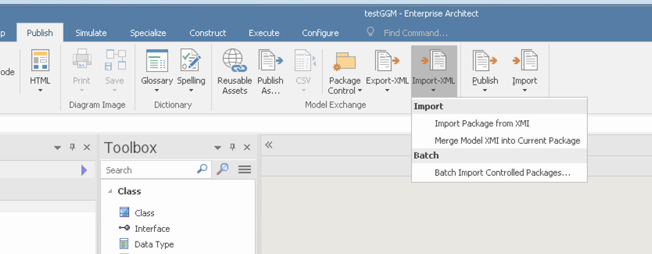 Het Gemeentelijk Gegevensmodel (GGM) kan als XMI-vorm worden geïmporteerd in een bestaand project in Enterprise Architect. Deze optie werkt niet met de viewer van Enterprise Architect.