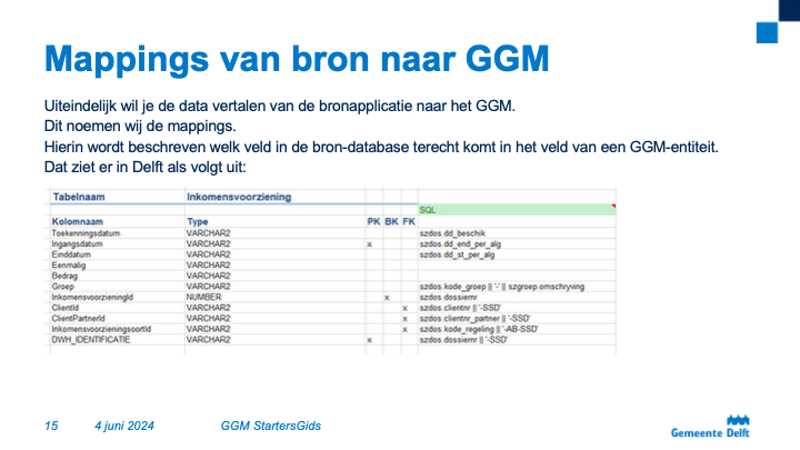 Data uit de bronapplicatie moet worden getransformeerd naar de fysieke tabellen volgens het GGM.