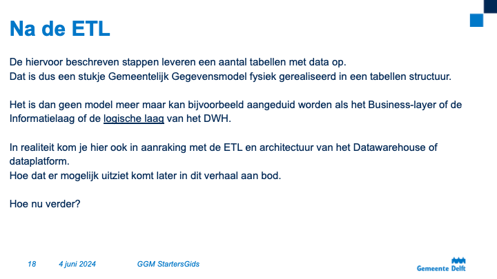 In realiteit kom je hier ook in aanraking met de ETL en architectuur van het Datawarehouse of dataplatform.