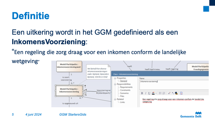Deze selectie levert de data set waarmee ‘InkomensVoorziening’ gevuld moet worden.Dit kan je dus zien als de transformatie of de definitie van de transformatie van bron naar GGM.