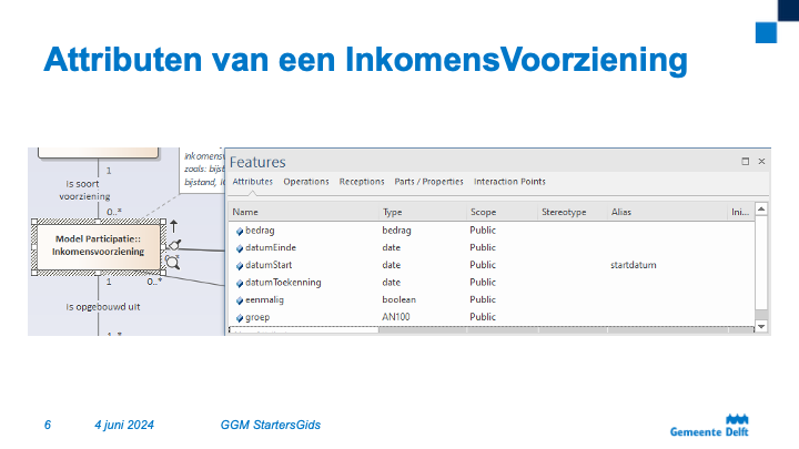 Deze selectie levert de data set waarmee ‘InkomensVoorziening’ gevuld moet worden. Dit kan je dus zien als de transformatie of de definitie van de transformatie van bron naar GGM.